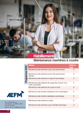 Programme 2025 55, rue Elbouhtouri Cité Erriadh - SOUSSE, 4023 Tél. 98.257.055 aefm.com.tn - info@aefm.com.tn 16